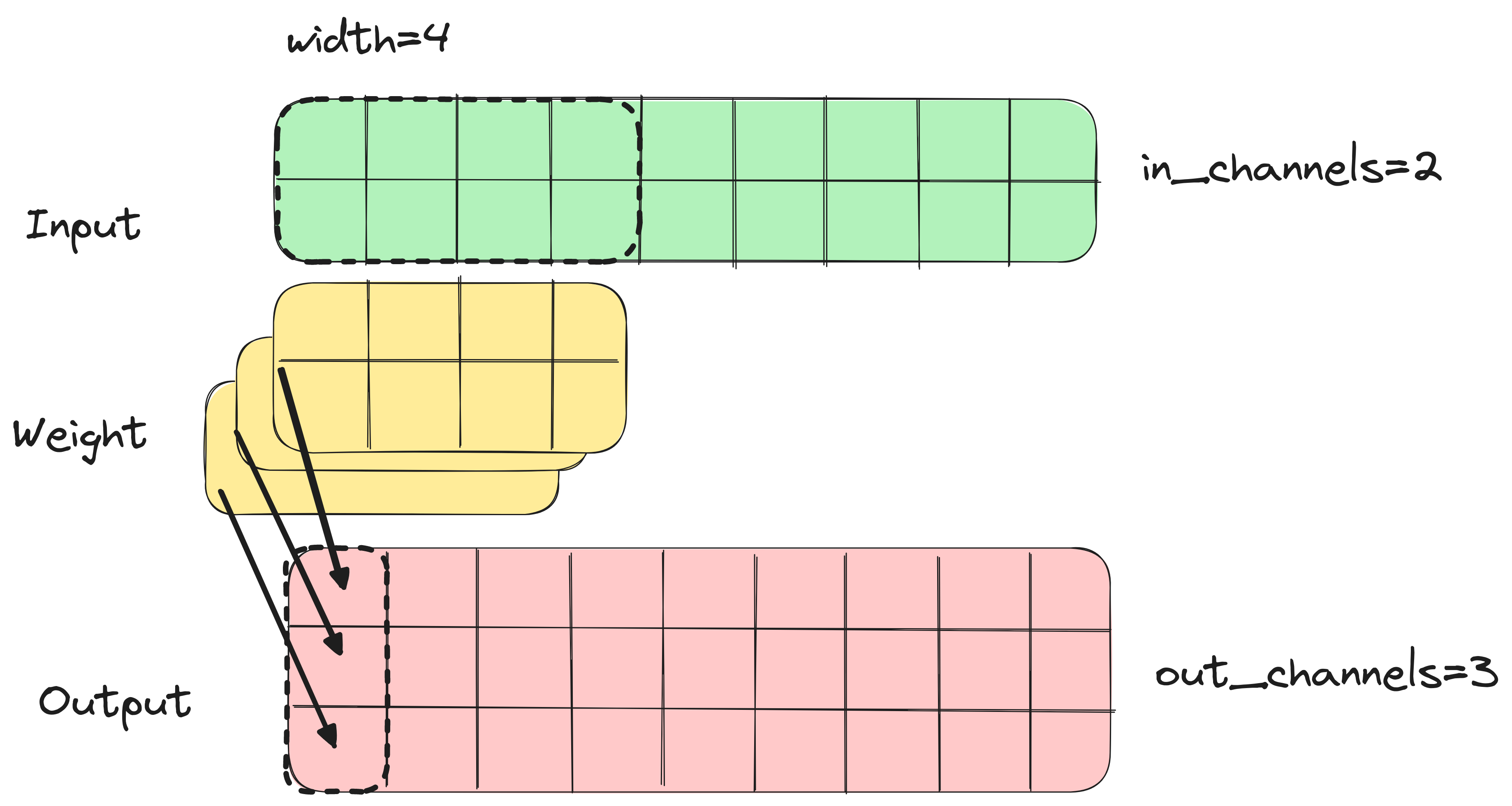 output[2] = weight[0] * input[2] + weight[1] * input[3] + weight[2] * input[4]
